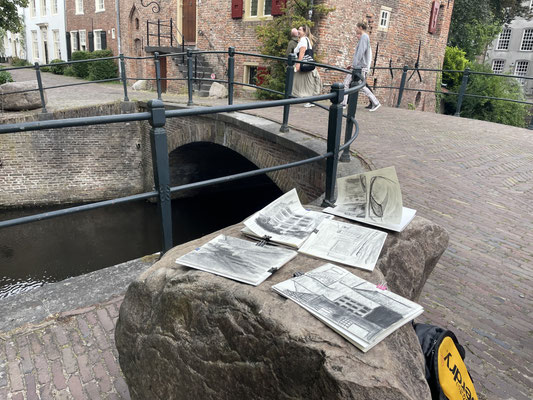 Ik sloot af met een schets waar een drietal kleine voorbijgangers (en hun hond) mijn schets een extra betekenis gaf.